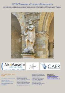 Vous êtes ici : Accueil / Programme du séminaire CRISIS / Workshop La nouvelle édition scientifique des Œuvres de Tasso, 12 09 2022, Salle Colloques / tasso poster