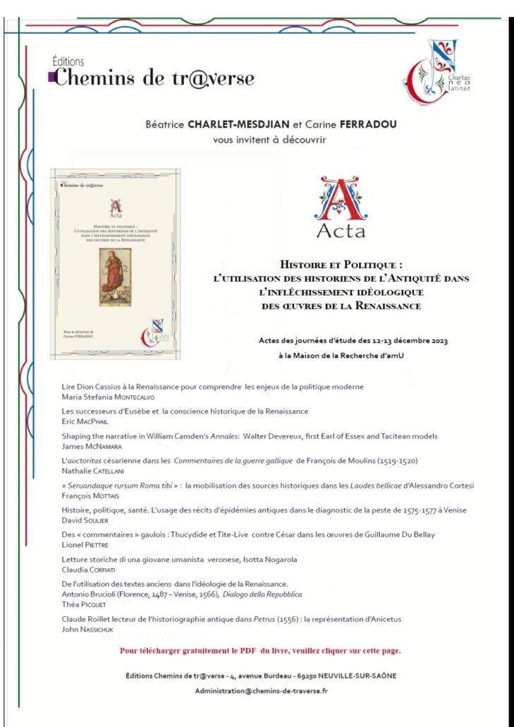 Histoire et Politique : l’utilisation des historiens de l’Antiquité dans l’infléchissement idéologique des œuvres de la Renaissance