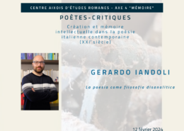 Poeti-Critici 22/01/2024 - 18h - Avec Gerardo IANDOLI