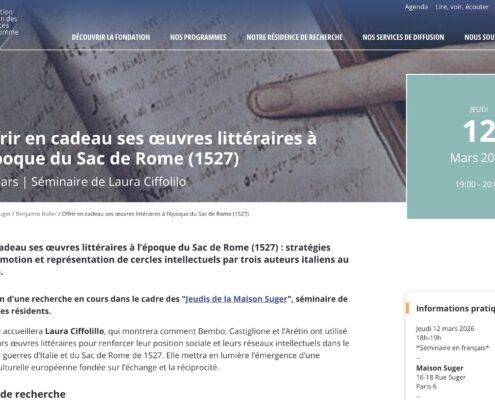 Offrir en cadeau ses œuvres littéraires à l’époque du Sac de Rome (1527) - Laura Ciffolillo 12 mars 2026